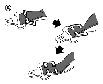 Afin d'éviter tout mou de la sangle sous-abdominale, fixez la ceinture-baudrier en position avec une agrafe de blocage (A). Utilisez une agrafe de blocage sur le dispositif de retenue pour enfant ou un composant équivalent en termes de dimensions et de résistance.
