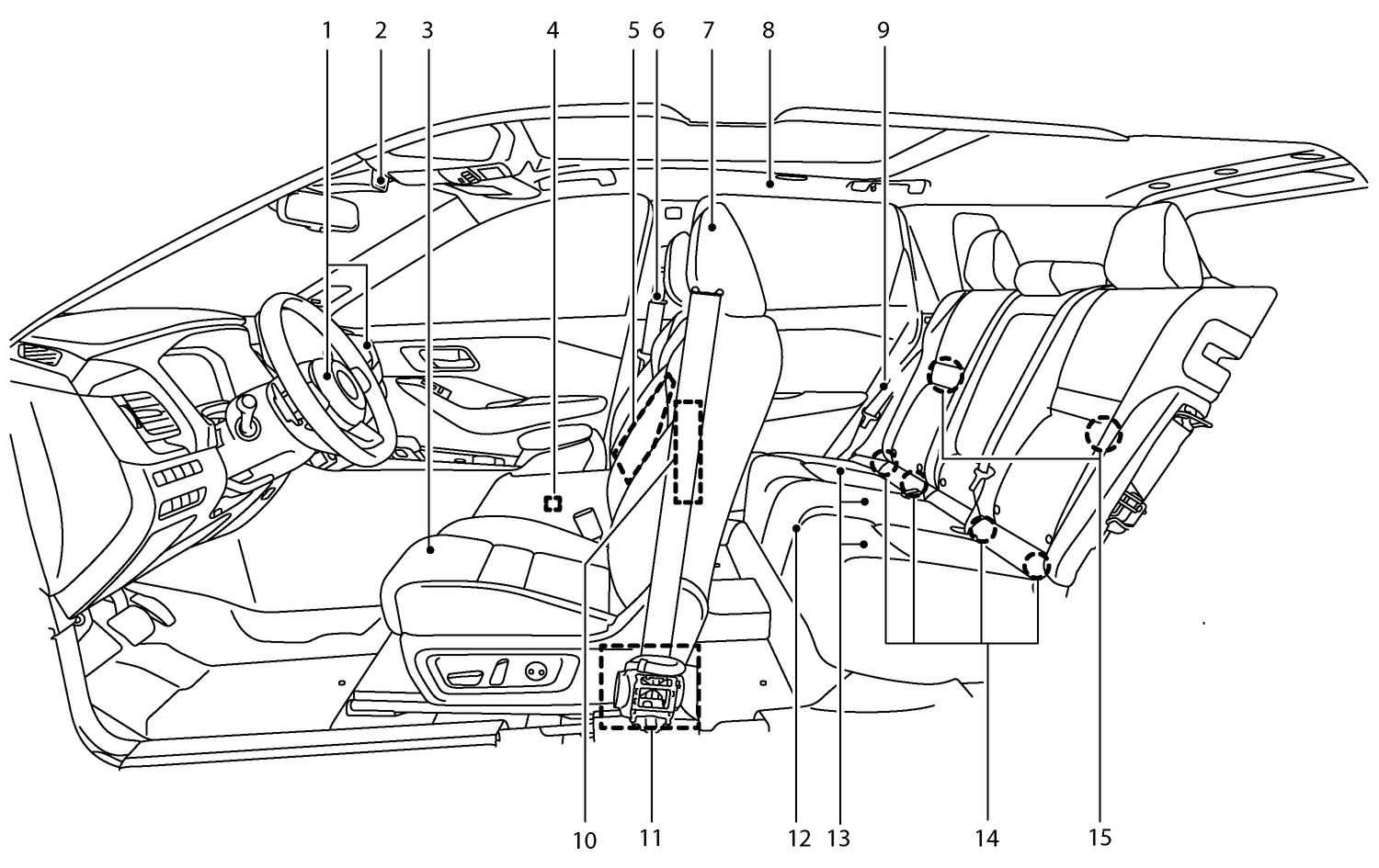 - 5. Airbag latéral fixé au siège central avant* ()