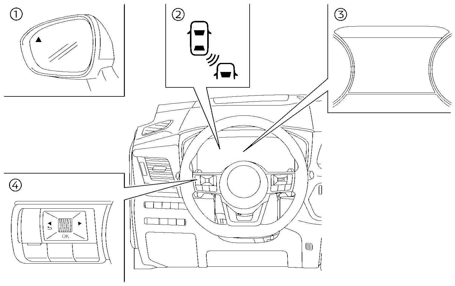 - (2)Témoin BSW (sur l'écran d'informations du véhicule)