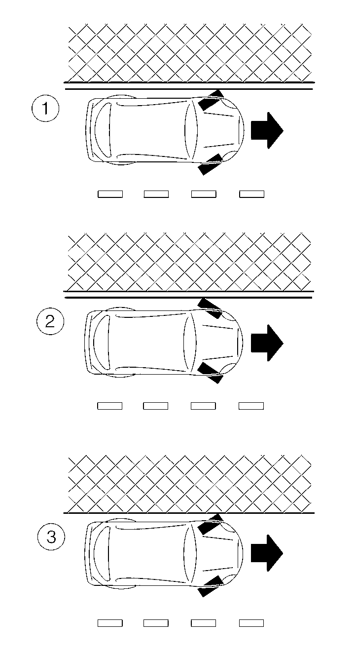 Tournez les roues vers le trottoir et laissez le véhicule avancer jusqu'à ce que la roue touche légèrement le trottoir. Serrez ensuite le frein de stationnement.