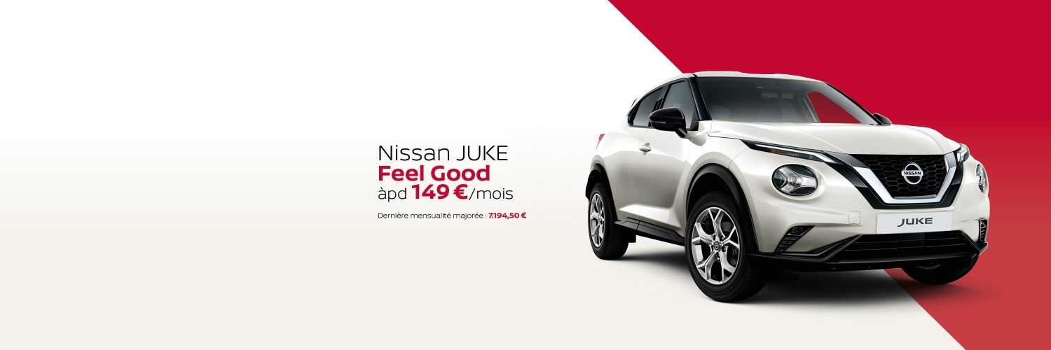 Les offres sont valables uniquement pour les clients particuliers et clients professionnels (hors leasing) du 01/06/2021 au 30/06/2021 à l’achat d’une Nissan Juke ou Micra Feel Good chez les concessionnaires Nissan participants. Les offres ne pourront en aucun cas être échangées contre leurs valeurs en espèces ou contre toute autre dotation/contrepartie de quelque nature que ce soit, ni remplacées par un avantage de valeur équivalente.