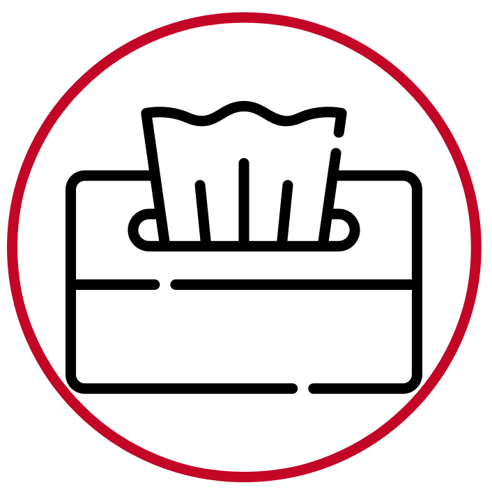 UTILISEZ DES MOUCHOIRS EN PAPIER ET JETEZ-LES DIRECTEMENT. |